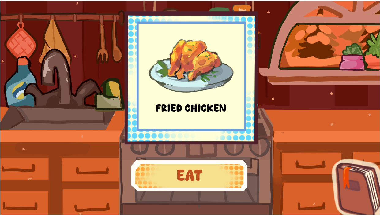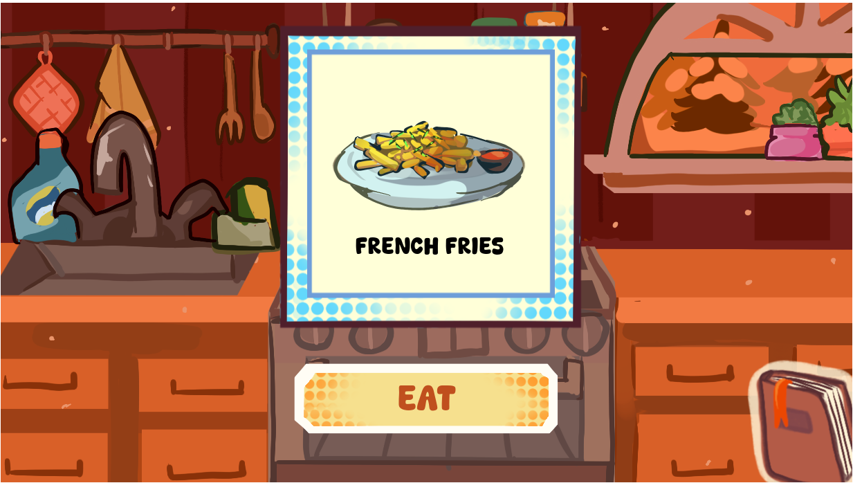 Transition screen>discover one recipe>transition> eat (repeat)